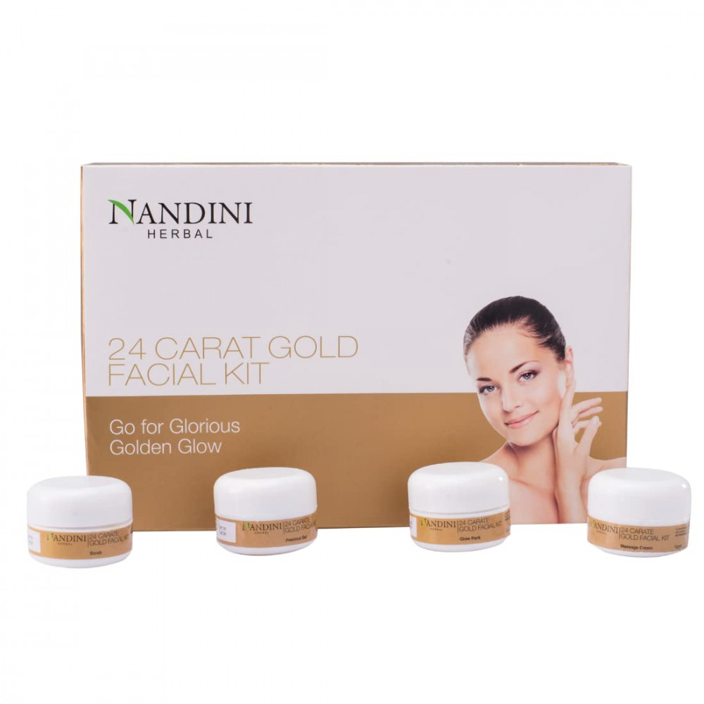 | Features | Contains Gold bhasma that boosts skin immunity Target gender: Unisex Box contains Gold gel, scrub, massage cream, glow pack Item forms: Cream/Liquid/Gel Unique blend provides sheen to the skin |
